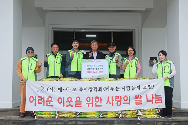 (사)베ㆍ사ㆍ모복지장학회(이사장 양창영)는 지난 20일 제주시청을 방문해 쌀(10㎏) 100포(450만원상당)를 기탁했다.